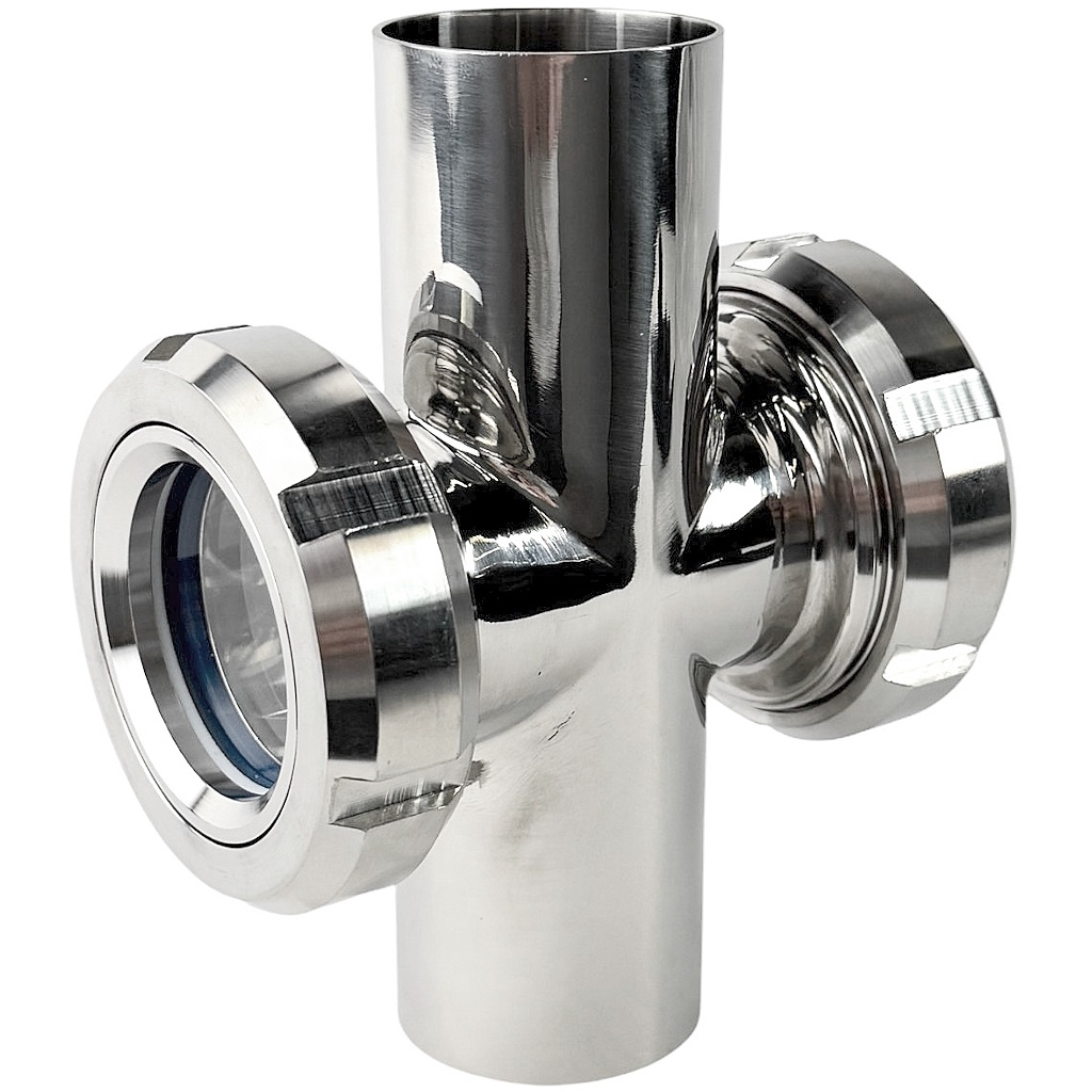 Патрубки под приварку в смотровом трубопроводе производятся в метрических размерах по стандарту DIN, либо в дюймовых размерах по пищевым стандартам SMS, ASME BPE, 3-А. Смотровой трубопровод изготовленный по этим стандартам имеет низкую степень шероховатости наружной и внутренней поверхности и, как следствие, обладает высокими асептическими свойствами, что позволяет применять его в пищевой, био- и фармацевтической отрасли.