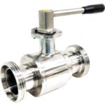 Кран соединяется с трубопроводом через молочную муфту DIN или SMS. Такой кран имеет на концах резьбы стандарта DIN 405, ответной частью для крана с резьбами будут служить конические штуцеры с накидными шлицевыми гайками. Кран под молочную муфту обладает высокими асептическими свойствами (Ra<0,51 мкм) и, как следствие, широко применяться в трубопроводах пищевых, химических и фармацевтических производств. Кран обладает высокой прочностью и надежность.