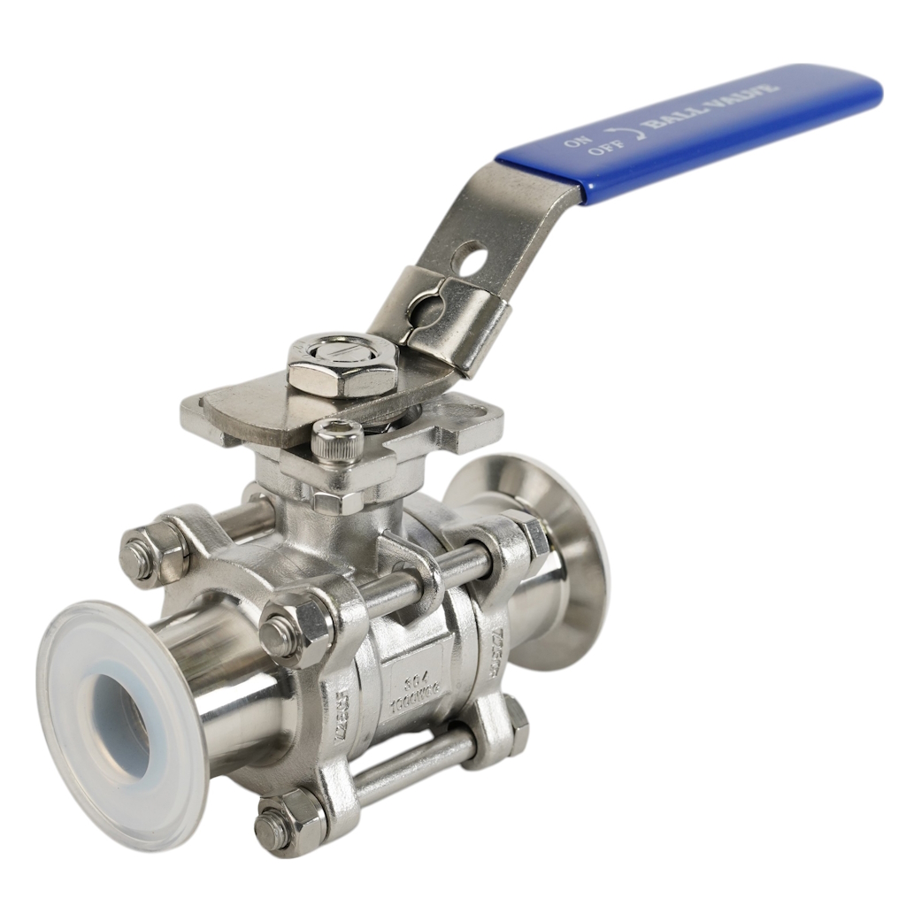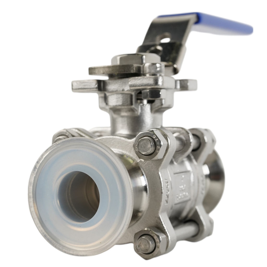 При помощи трехсоставного крана с кламп соединением в пределах трубопроводов останавливают движение рабочей жидкости. Рабочий элемент такого крана — нержавеющий шар. Управление краном — ручное. Трехходовые краны оснащены площадкой, позволяющей дооснащать трехходовой кран пневмоприводом или электроприводом.