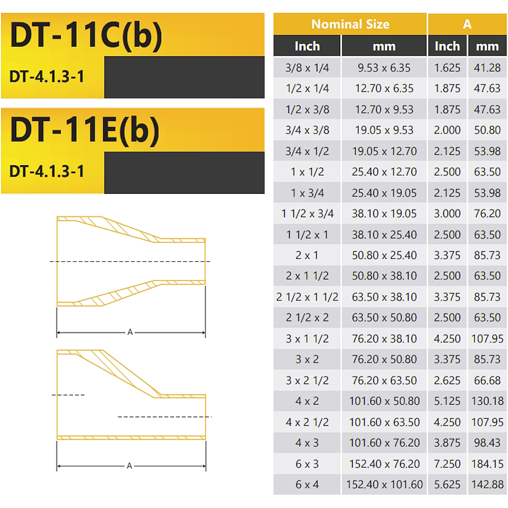 Характеристики удлиненного конического перехода ASME BPE (DT-4.1.3-1):