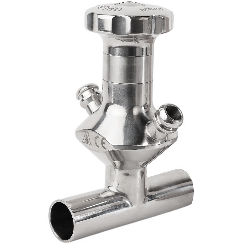 Асептический пробоотборный клапан с присоединением к трубопроводу служит для отбора проб жидкого продукта из труб в стерильных условиях, это позволяет исследовать и контролировать химический состав и другие параметры продуктан не останавливая процесс производства. Стерильность обеспечивается тем, что конструкция асептического пробоотборника позволяет проводить стерилизацию паром или спиртом до и после каждой взятой пробы продукта. Как результат — отсутствие риска загрязнения образца.