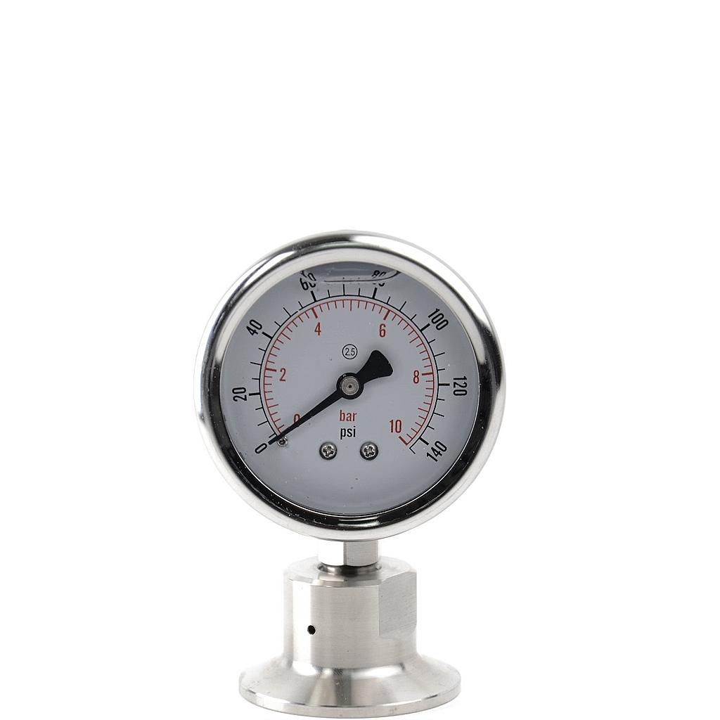 Диафрагменный нержавеющий манометр — это измерительная система из манометра общего назначения и мембранного разделителя с асептическим соединением типа кламп (tri-clamp). Такая измерительная система имеет преимущества в виде быстрой и удобной установки на технологической площадке, легкому очищению, безопасности и надежности. Манометр с разделителем изготавливается из нержавеющей стали AISI 316L, одобренной к применению в пищевой и биофармацевтической промышленности, что позволяет соответствовать ему стандартов качества фармацевтической продукции GMP. Такой манометр широко применяется в производстве напитков и лекарств, очистке воды и других производствах, требующих высоких гигиенических свойств.